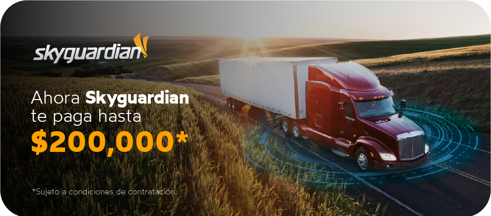 Skyguardian es líder en sistemas de seguridad en la industria logística en México, y es el único proveedor de servicios de telemetría que te ofrece una póliza de servicio de garantía que cubre una compensación de hasta 200,000 MXN en caso de que tu unidad sea robada y no recuperada a pesar de tener instalado los equipos Skyguardian. De esta forma, no solo ponemos nuestra inteligencia, sino también nuestra interés por proteger tus activos.